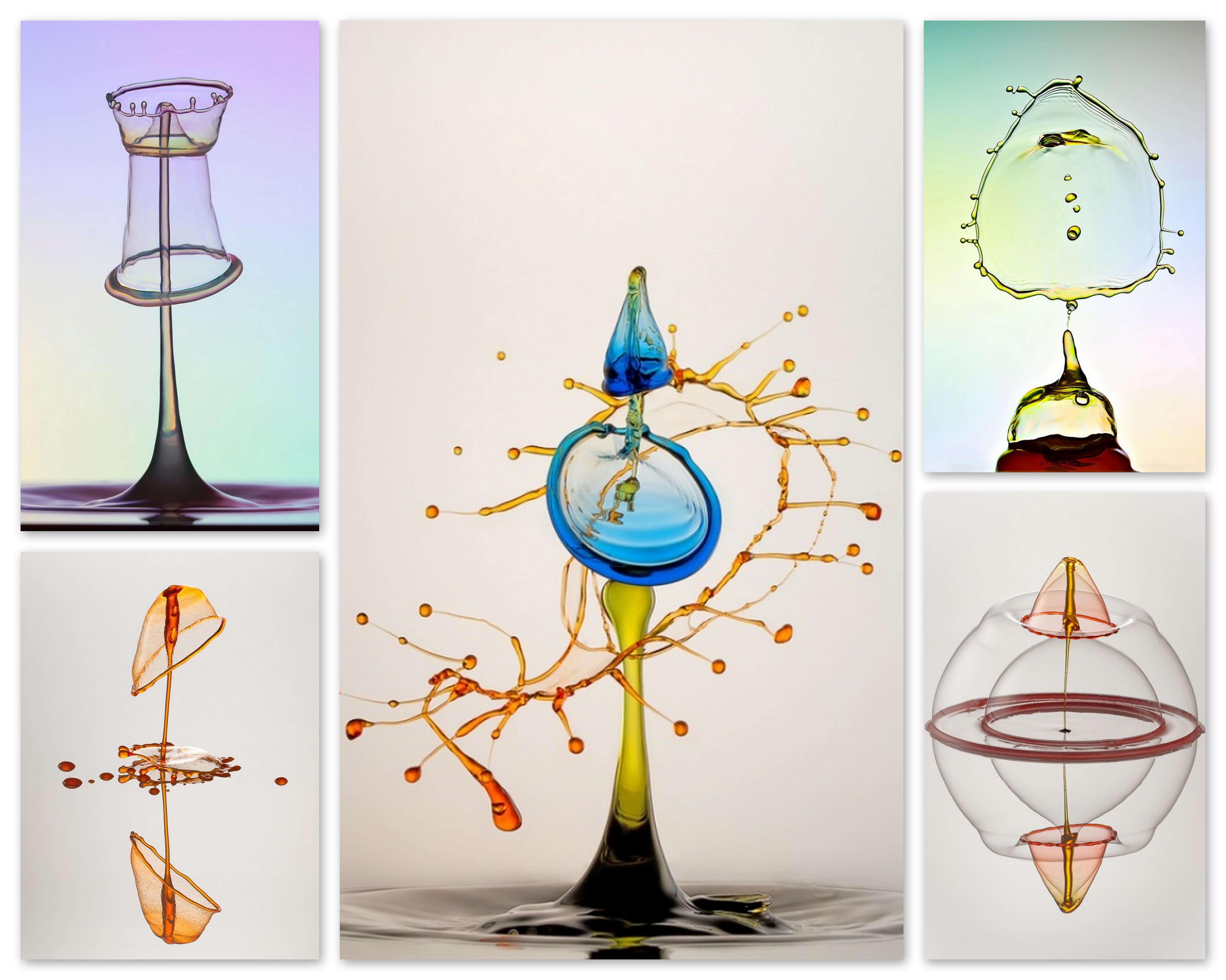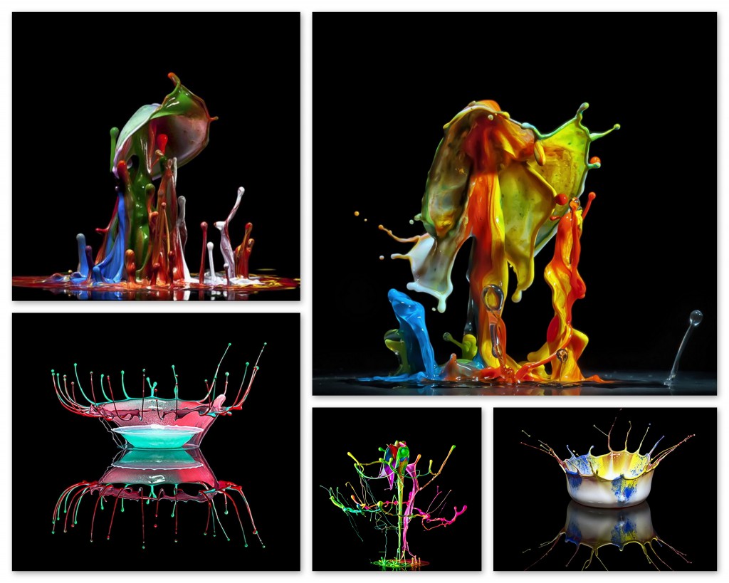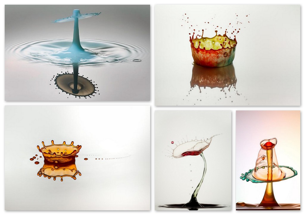 В первом случае, фотограф запечатлевает капли, которые в строго определенной последовательности попадают друг на друга и на водную поверхность. Маркус Ройгельс экспериментирует не только с цветом жидкости, но и с ее густотой и вязкостью, добавляя различные соединения и вещества.