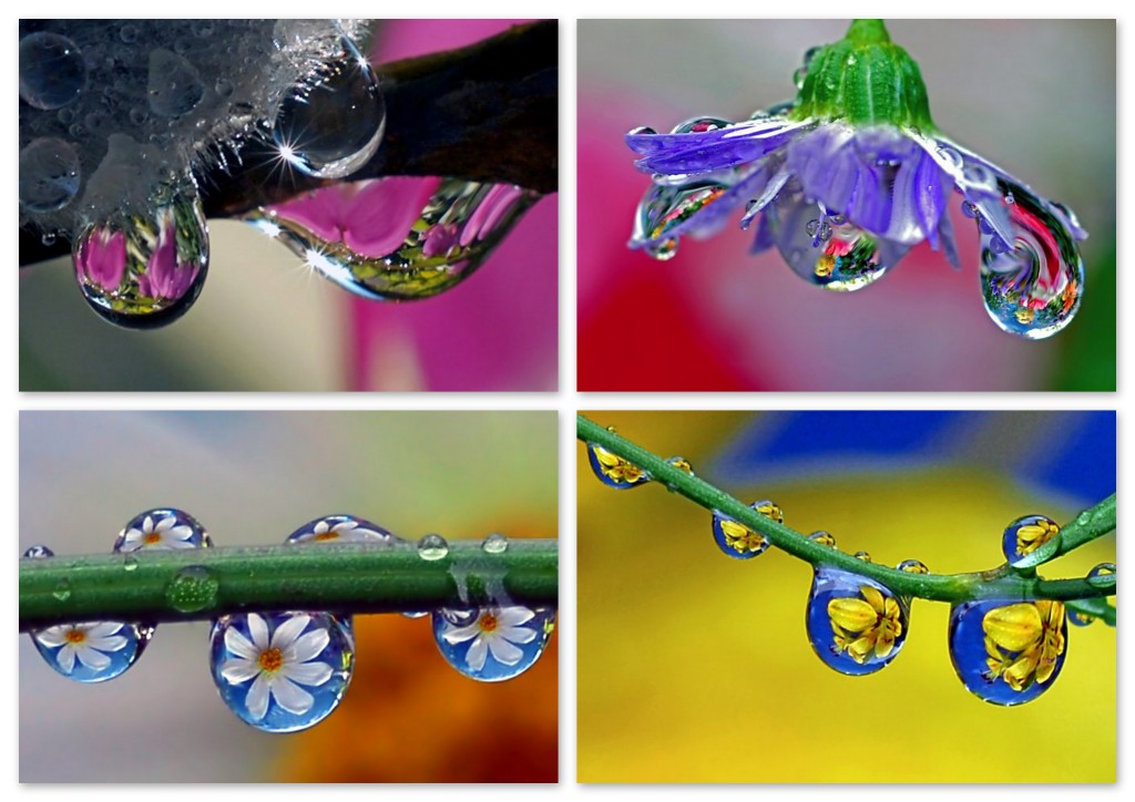 Аризонский фотограф Стив Уолл (Steve Wall) также пленен красотой капли воды. Росинки он воспринимает как своеобразные линзы-окошки, в которых отражается окружающий мир – цветы, облака, листья. Необходимо найти лишь нужный ракурс, увидеть чудо и воссоздать на фотографии. И тогда природа раскроет свои маленькие секреты. Или даст новые загадки?