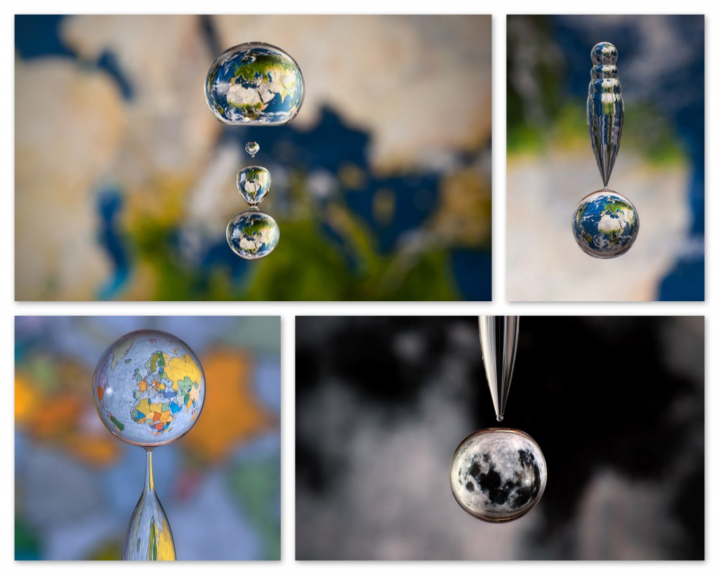 Во втором случае, для отображения используется рисунок или предмет. Существует целый цикл фотографий, где в капле воды отображается планета Солнечной системы.