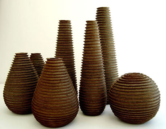 Также возможен и другой способ получения интересных интерьерных вещей, когда гофрокартон перерабатывается, смешивается с клеем, и из полученной массы, по примеру лепки из пластилина или глины, создается уникальная мебель. Ярким примером такого творчества являются работы бразильского дизайнера Domingos Totora, детали мебели которого похожи на валуны или гальку.