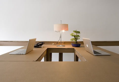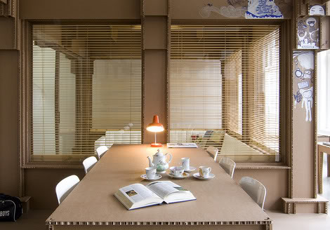 Гофрокартон используют некоторые предприимчивые и неординарные дизайнеры и в создании целого интерьера комнат, как например, удивительное обустройство офиса голландского рекламного агентства Nothing (идея дизайнеров Alrik Koudenburg и Joost van Bleiswijk). Красиво, необычно и экономно!