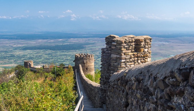 Со стен крепости и дальней стены открывается просто умопомрачительный вид на долину и высокие горы вдалеке. Линия первой стены обороны петляет вниз и вверх по холмам Сигнахи и создаётся впечатление, что это Великая китайская стена в миниатюре.