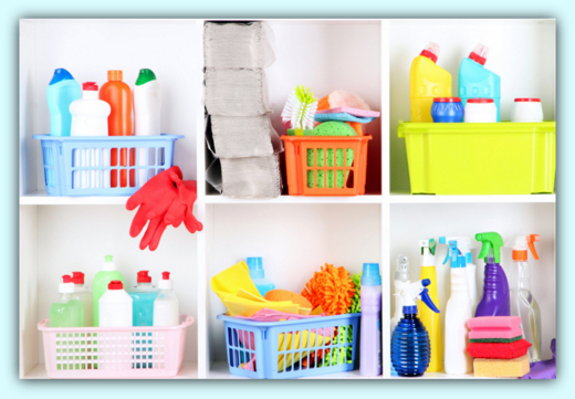 - если в семье есть дети, то бытовую химию надо держать в шкафах с замками или блокираторами, или на верхних полках, куда ребенок не залезет;