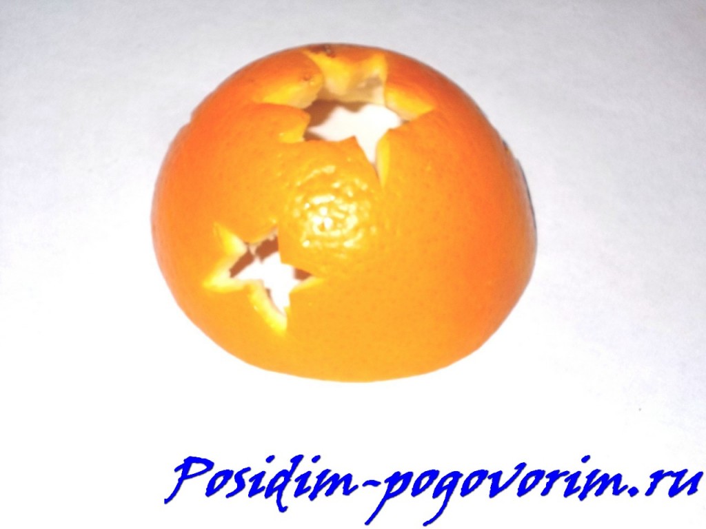 3. Вырезаем в кожуре различные сквозные фигурки – кружочки, звездочки, ромбы.