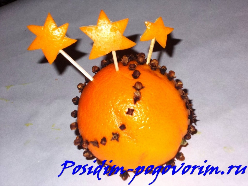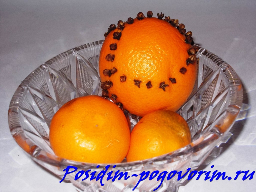 Пересыпаем кожуру молотой корицей или просто добавляем палочку корицы, гвоздикой, горошком душистого перца. Ставим на нужное место. Наслаждаемся ароматом и красотой.