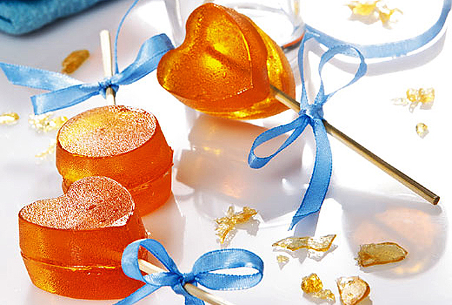 – глянцованная. На поверхность карамели наносится тонкий слой из воска, жира или талька;