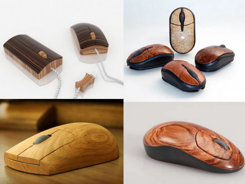 В свете всеобщей экологизации компьютерные мышки из дерева становятся популярным и востребованным рабочим или развлекательным инструментом. Как материал может использоваться и общедоступные дуб и бук, а могут и быть задействованы и ценные породы деревьев.