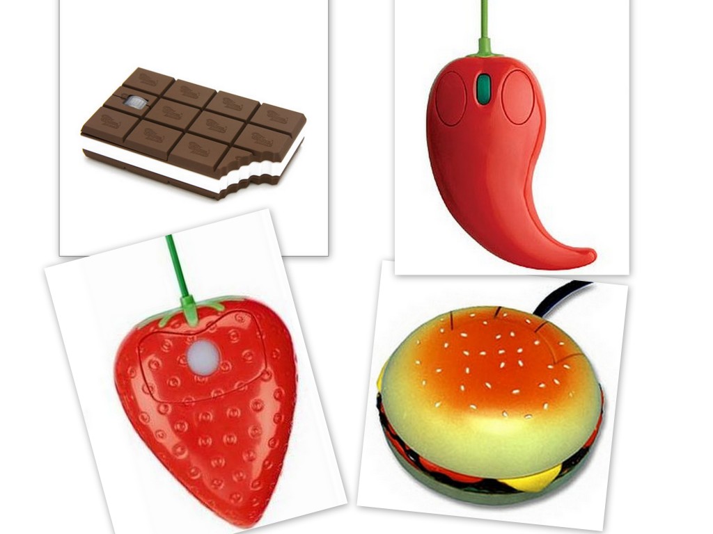Оригинальные мышки, напоминающие своим видом какое-либо блюдо, привлекают внимание и неголодного человека. Это как напоминание – работай, но о обеденном перерыве не забывай!