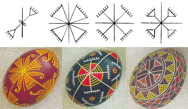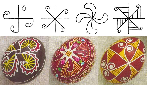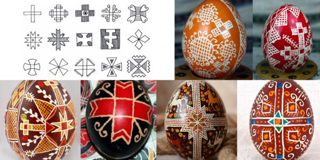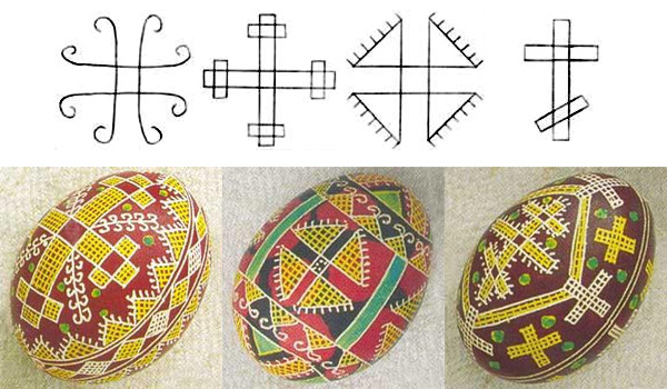 В орнаменті писанок хрест є особливим «божим знаком», який пов’язують з деревом життя.