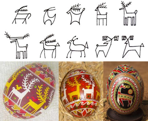 На гуцульських і буковинських писанках пишуть коней і оленів. Кінь є символом чоловічої основи у природі, символом Сонця.