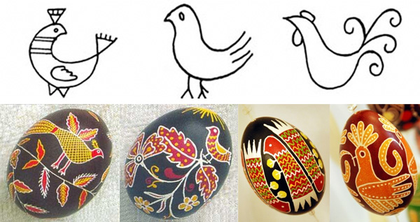 Символічні птахи на писанках – це уява про безсмертність душі. Саме птахи можуть якнайвище долетіти до Бога і є його посланцями на Землі. Зображена зозуля – віщувала багатство, була здатна зцілювати. Лелека приносив дітей, півень ставав символом світла, яке побороло темряву. Ластівка і сова несли знаки добра і зла.