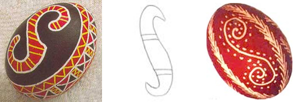 Часто використовуваним знаком на писанках є символ змії, який ще називають S-подібним знаком вічності чи «сігмою» (від латинської назви букви).
