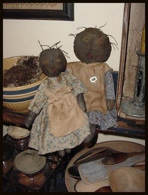 Примитивные куклы родились еще во времена коренных американцев и американских поселенцев и были единственными игрушками бедных крестьянских детей. Примитивные домашние куклы были сделаны из остатков тряпочек, лоскутов и мешковины. Зачастую эта ткань была грубой и старой, имела неопрятный и изношенный вид. В качестве аксессуаров использовались ненужные пуговицы, камешки, солома и веточки.