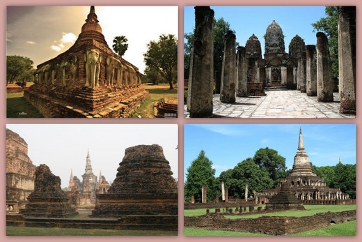 Сукхотхай (Сукотаи) со всех сторон был окружен высокими стенами, при этом в центре каждой были сооружены ворота, а внутри стен располагались 26 храмов и королевский дворец.