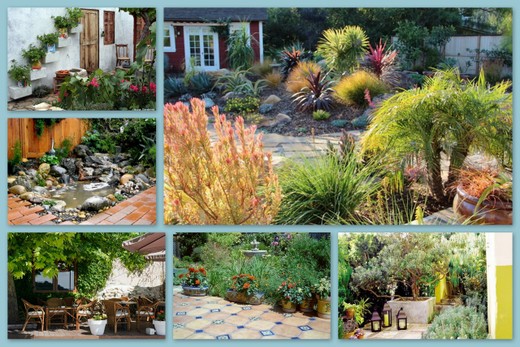 Территория: обязательно наличие зоны с водоемом (пруда, бассейна, фонтана), оформленной плиткой. Можно обустроить на территории гроты, разноступенчатые площадки. Сад – пышный, богатый, с использованием вечнозеленых растений (самшита, бересклета Форчуна, калины морщинистой, туй, можжевельников, елей, кипарисов и пр.). Идеально впишутся в ландшафт топиарии, стриженные изгороди.