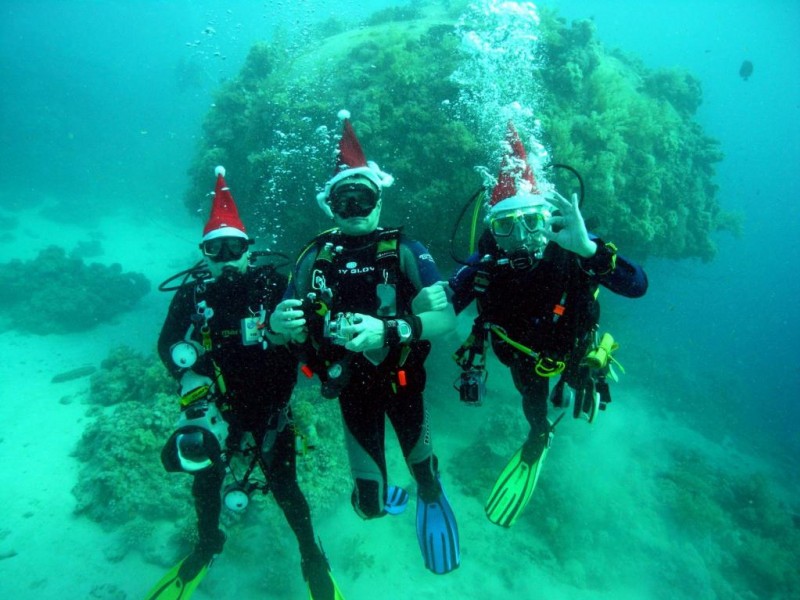 Для молодых и смелых, да еще при деньгах, новогодние посиделки за столом неактуальны. Новомодное веяние сейчас – дайвинг. БОльшего и оригинального события, чем встреча Нового года под водой, в жизни, возможно, и не будет. Некоторые умельцы шампанское под водой распивают – но это уже на месте покажут, как делается, за отдельную плату.